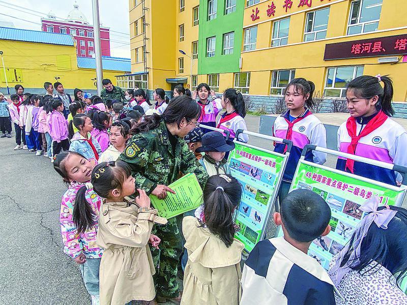 本报讯(吕宵雅 全媒体记者邱贺岩)为进一步增强广大学生对野生动物的保护意识,引导他们积极参与到野生动物保护行动中来,近日,塔河林业局森林资源管理科党支部组织党员深入县第二小学开展了“完善保护体系、护佑候鸟迁飞”主题党日入校园宣传活动。