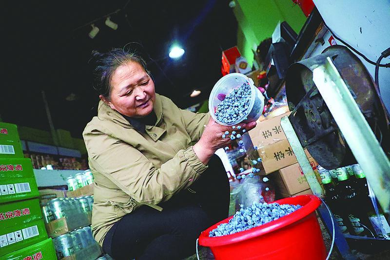 线上线下联动热销,林下山珍炙手可热。在“蓝岭山珍”山产品店,记者看到,网商孙秀丽正录制短视频,发到抖音等平台推介野生蓝莓果,据她介绍,每天向客户销售手采果多达200余斤。