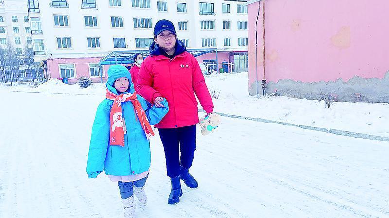 陈红娟帮助社区居民接送上学放学的孩子。